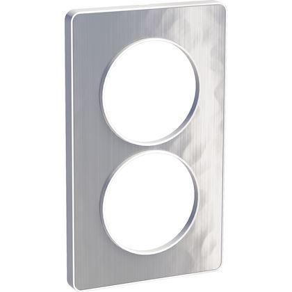 Odace Touch, plaque Aluminium martelé avec liseré Blanc 2 postes verticaux 57mm