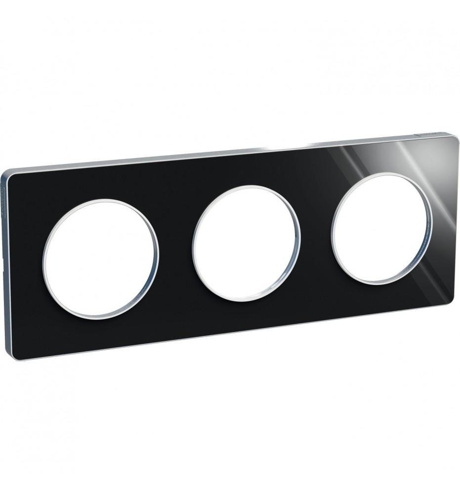 Odace Touch, plaque Aluminium brillant fumé avec liseré Alu 3postes entraxe 71mm