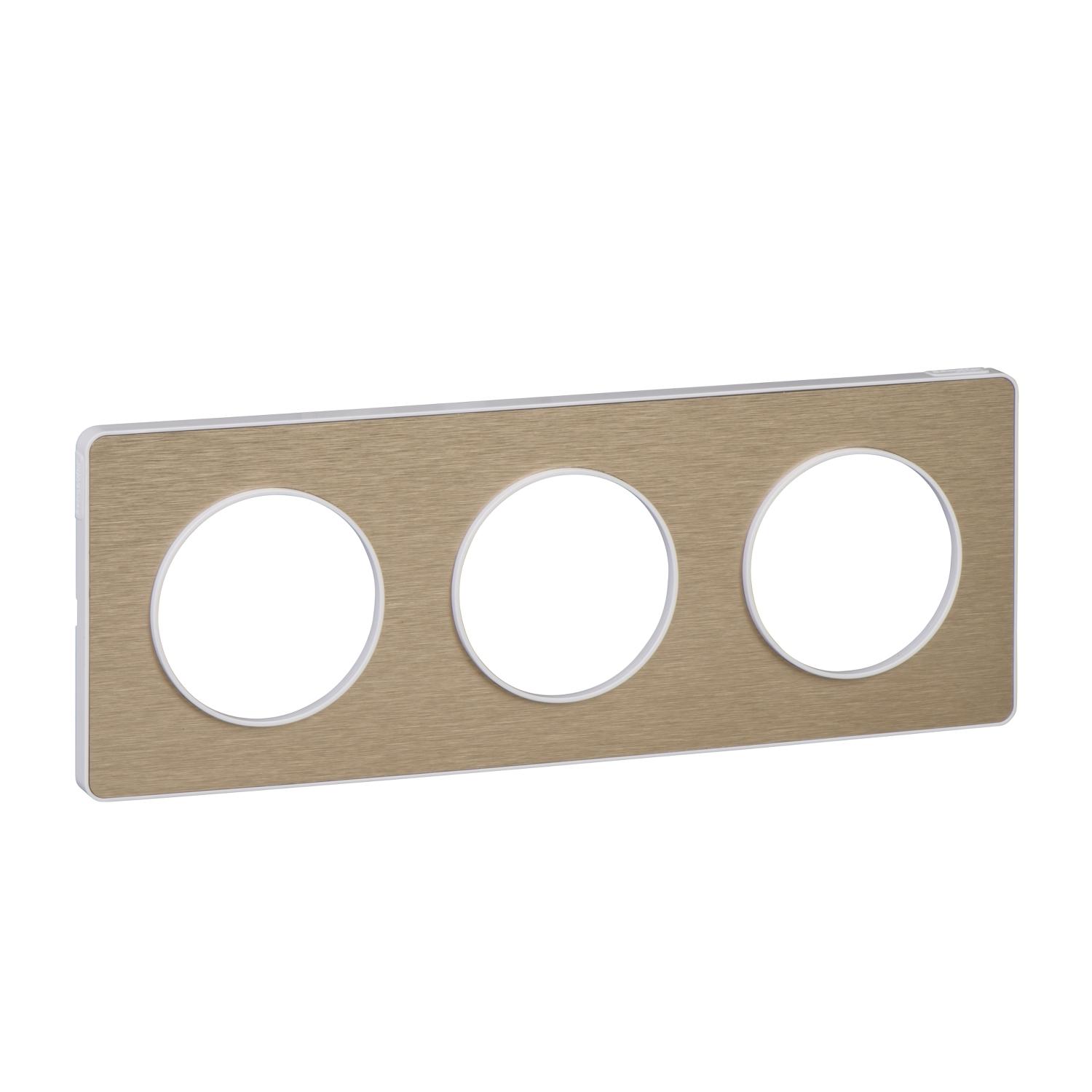 Odace Touch, plaque Bronze brossé liseré Blanc 3 postes horiz./vert. 71mm