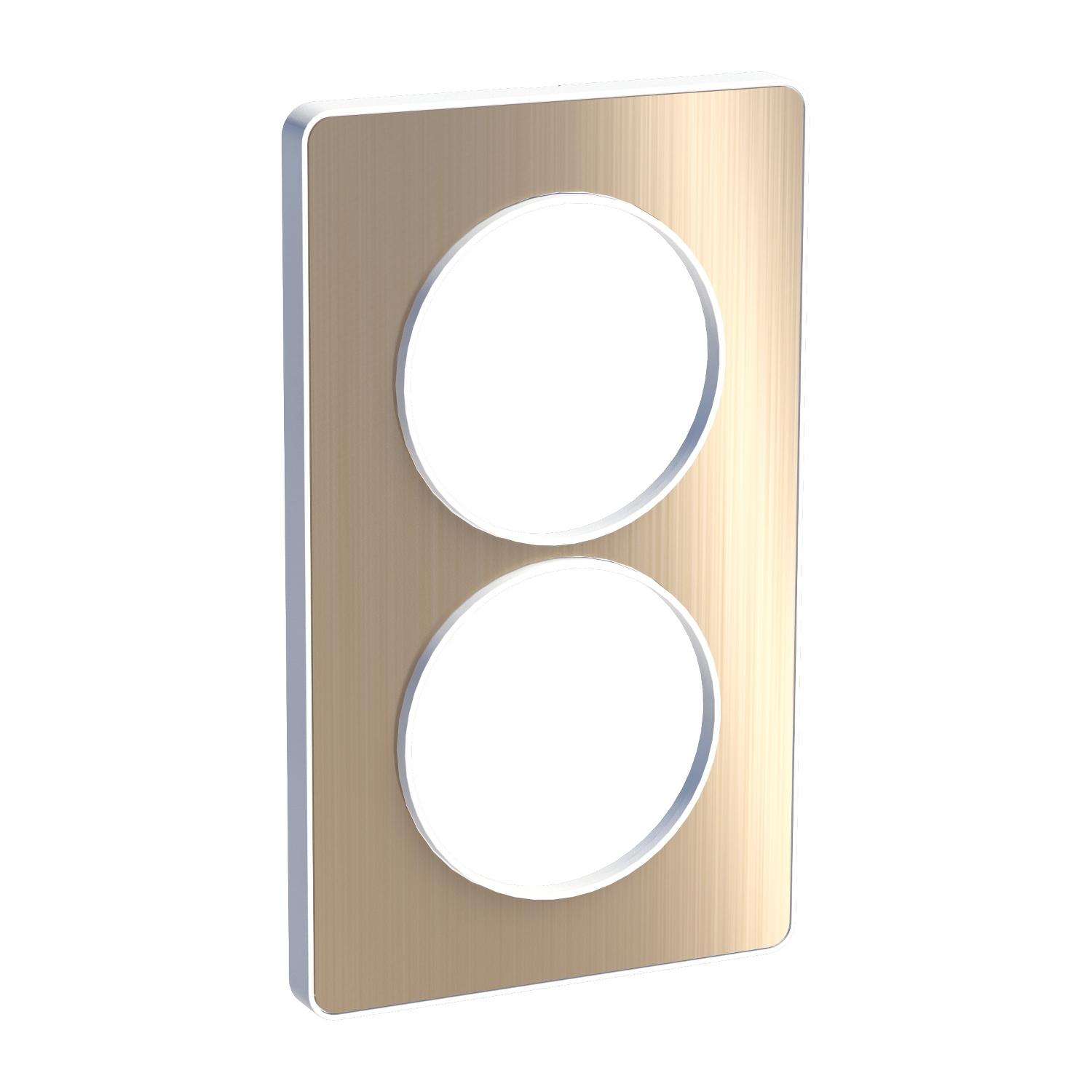 Odace Touch, plaque Bronze brossé avec liseré Blanc 2 postes verticaux 57mm