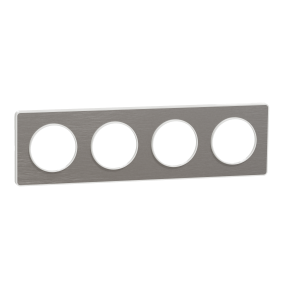 Odace Touch, plaque Aluminium brossé liseré Blanc 4 postes horiz./vert. 71mm