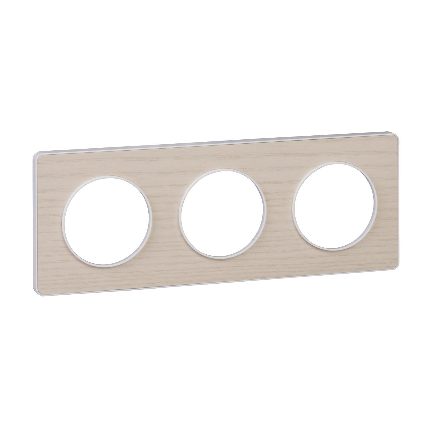 Odace Touch, plaque Bois naturel liseré Blanc 3 postes horiz./vert. 71mm
