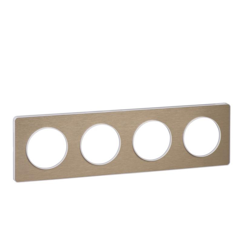 Odace Touch, plaque Bronze brossé liseré Blanc 4 postes horiz./vert. 71mm