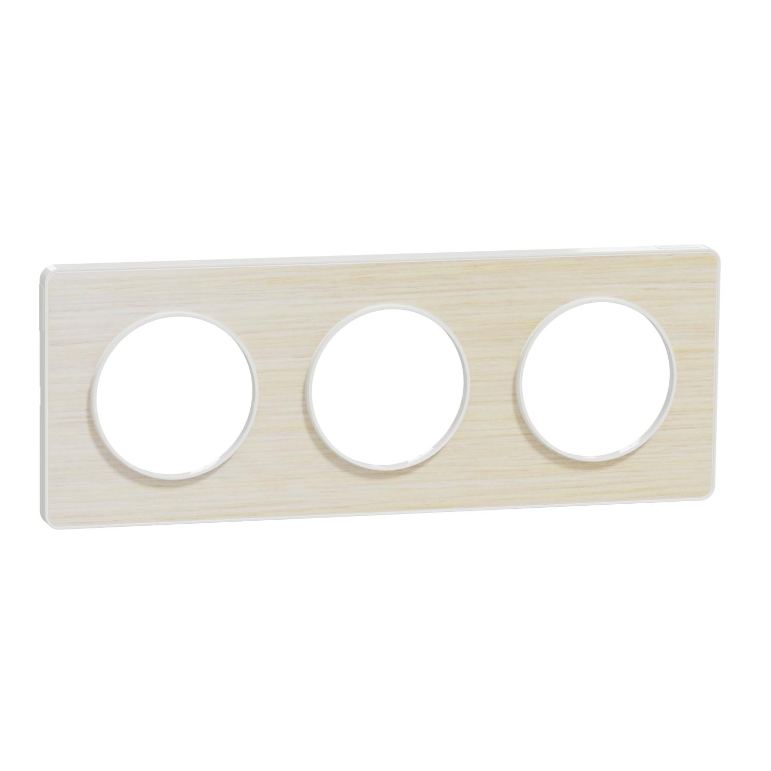 Odace Touch, plaque Bois naturel liseré Blanc 4 postes horiz./vert. 71mm