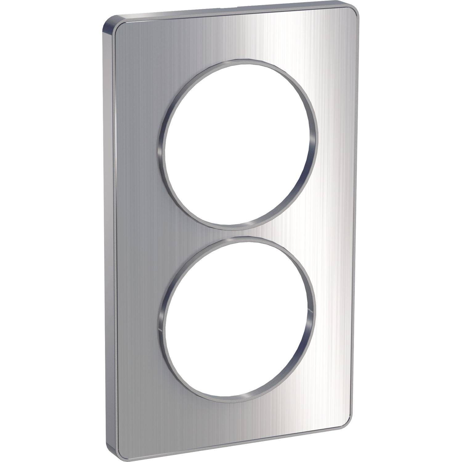 Odace Touch, plaque Aluminium brossé liseré Alu 2 postes verticaux entraxe 57mm